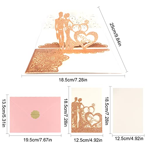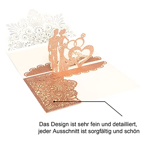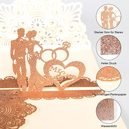 【Hochwertiges Material】 Die Pop-up-Hochzeitskarte besteht aus hochwertigem Perlpapier mit starkem dreidimensionalem Effekt, hellem Druck, wasserdicht, nicht leicht zu knittern und nicht verfärbt. Grußkarten werden mit einem Umschlag geliefert, um Ihre Karte besser zu schützen.