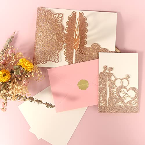 【Schöne Hochwertige Karten】 Hochzeitseinladung 3D-Hochzeitskarten werden von einem automatischen Laserschneider graviert, um sicherzustellen, dass jedes Detail perfekt ist und die Kanten flach sind. Das Design ist sehr fein und akribisch, und jeder Ausschnitt des Ausschnitts ist akribisch und schön.