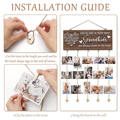 Maße und Materialien: Dieser Fotohalter misst 39,5 x 16,5 x 0,8 cm, wird mit 5 herzförmigen Anhängern und 20 Holzklammern zum Aufhängen und Befestigen unvergesslicher Fotos geliefert. Aus hochwertigem Holz, nicht leicht zu brechen, können Sie es mit Vertrauen verwenden.