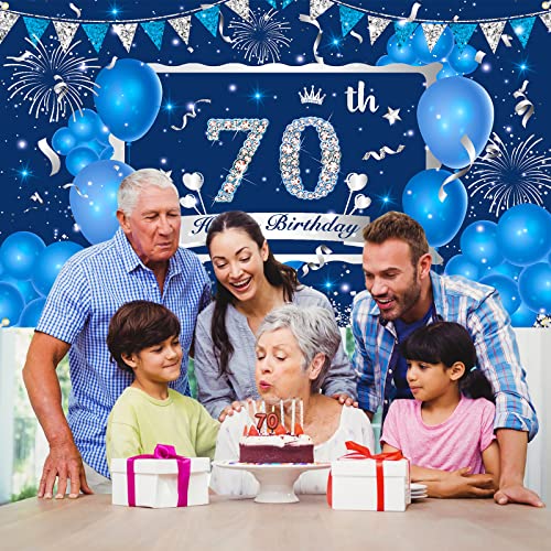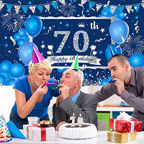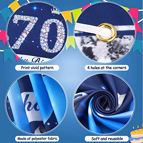 ✨[Breite Anwendungen] – Das Hintergrundbanner zum 70. Geburtstag kann verwendet werden, um verschiedene Anlässe zu dekorieren, z. B. Geburtstagsfeiern mit blauem Thema, Fotorequisiten zum 70. Jahrestag oder Tischdecken. Es ist eine wunderbare Dekoration zum 70. Geburtstag für Männer, Ihren Vater oder Großvater