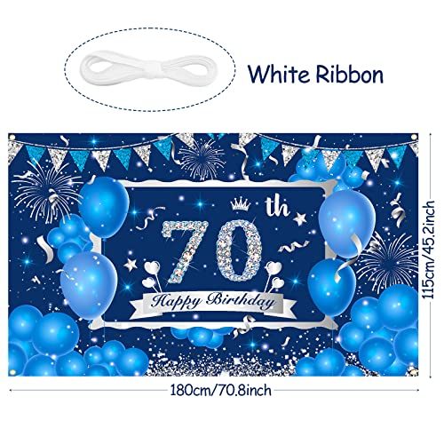✨[Größe] – Das blau-silberne Hintergrundbanner zum 70. Geburtstag misst 180 * 110 cm / 70,8 * 43,3 Zoll und ist groß genug für die Dekoration zum 70. Geburtstag oder für den Fotohintergrund Ihrer Jubiläumsfeier und fügt Ihrer Party weitere Highlights hinzu