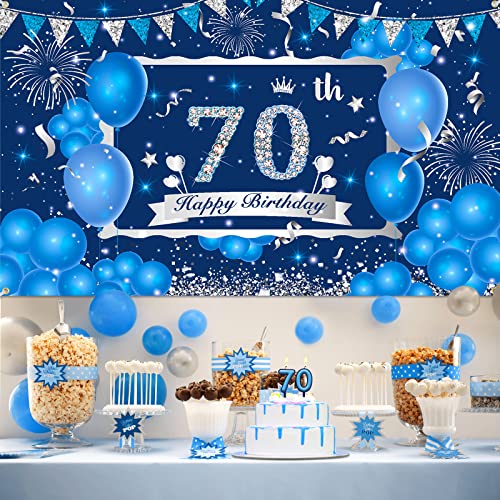Details: Blau 70. Geburtstag Dekorationen Banner für Männer Frauen, Marineblau Silber Happy 70. Geburtstag Banner Hintergrund…