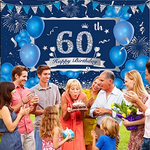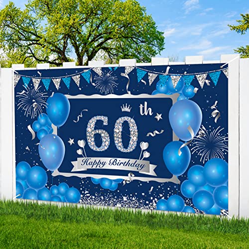 Details: Blauer 60. Geburtstag Dekorationsbanner für Männer, Marineblau Silber Happy 60. Geburtstag Banner Hintergrund, Großes…