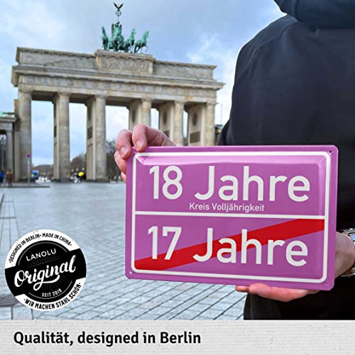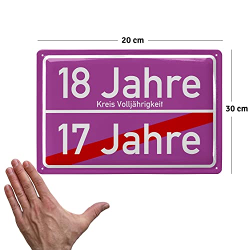 GESCHENK ZUR VOLLJÄHRIGKEIT – Das witzige Ortsschild ist ein echter Hingucker und zaubert jedem Betrachter ein Lächeln ins Gesicht. Auf dem Blechschild können alle Freunde oder Schenkende einen Gruß mit einem wasserfesten Stift hinterlassen, als Alternative zur Grußkarte zur Volljährigkeit.