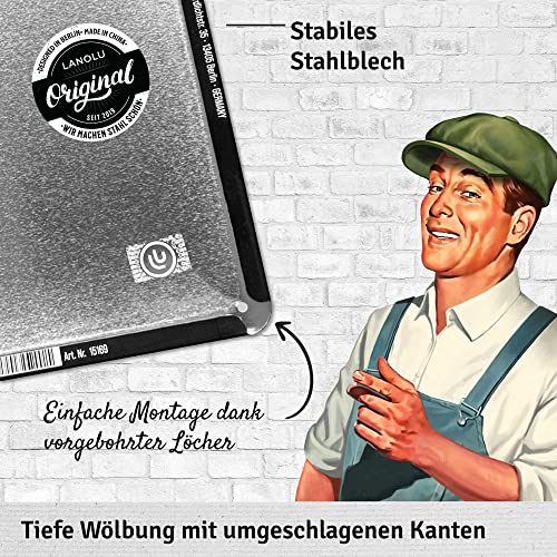 HOCHWERTIGES GESCHENK – DESIGN TRIFFT QUALITÄT: Wir sind Enthusiasten und brennen für vintage Metallschilder. Wir verwenden strahlende Farben und besonders starkes Stahlblech. Alle Blech-Schilder besitzen eine Wölbung und werden mit Klarlack veredelt, für besonderen Glanz und lange Haltbarkeit.