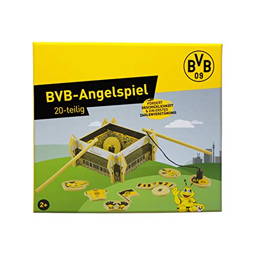 Jetzt wird die Angel ausgeworfen das klassische Kinderspiel kommt jetzt als bvb-angelspiel im Borussia dortmund-design daher. Mit zwei magnetangeln und 14 Figuren, deren Unterseiten mit Punktzahlen bedruckt sind, fördert Der bvb-angelspaß die Geschicklichkeit und ein erstes Zahlenverständnis. Das Angelbecken mit dem Aussehen des Signal IDUNA PARK besteht aus 4 einfach zusammensteckbaren Seitenteilen. Das Spiel ist für Kinder zwischen 2 und 5 Jahren empfohlen.