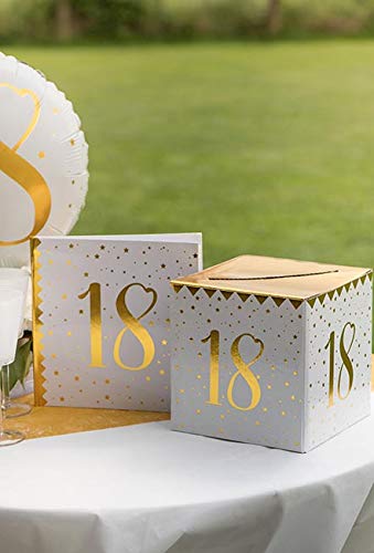 Artikel: Brief- und Kartenbox 30 Geburtstag „Golden Times“, Breite: ca. 20 cm, Farbe: Weiß, Gold, Hoehe: ca. 20 cm, Tiefe: ca. 20 cm, Material: stabile Tischdecke, Sonstiges: Das Produkt muss noch selbst zusammen gesteckt werden.