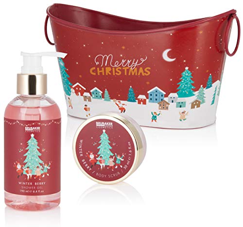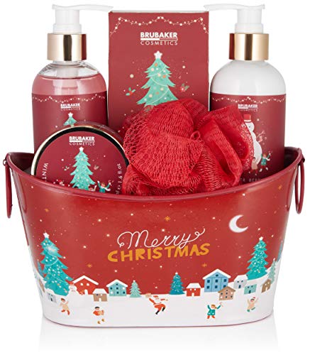 Details: BRUBAKER Cosmetics Bade- und Dusch Set Winter Beeren Duft – 6-teiliges Geschenkset in dekorativer Metallwanne…