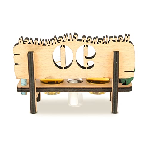 🎁 Diese ausgefallene Geschenkidee ist sicher der Hingucker als individuelles Geschenk mit Gravur für den Mann oder die Frau zum Jubiläum oder Geburtstag – in das Glasfläschchen können Sie z.B. wie als Flaschenpost ein Zettelchen schreiben- Präzise in das Holz geschnitten die Aufschrift „Herzlichen Glückwunsch“ und die Jahreszahl auf der Rückenlehne ebenso der gravierte Lorbeerkranz – Geschenke zum Fest und eine bleibende Erinnerung