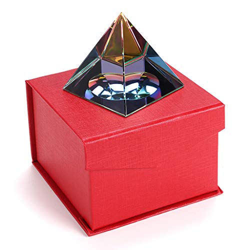 Details: BTSKY Kristall-Pyramide, schillernd, mit Geschenk-Box, in Regenbogenfarben, Dekoration fürs Büro zu Hause, 2.4inch