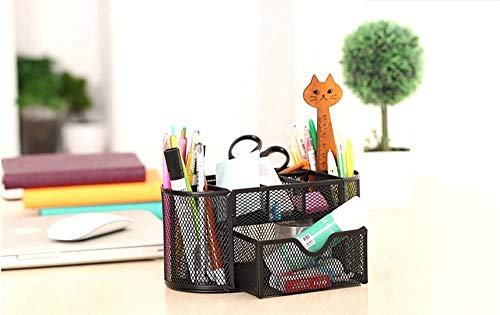 🌴All-in-One Büro Schreibtisch Organizer – Netume Schwarz Metall Schreibtisch Organizer umfasst 4 Stiftehalter, 4 Flächer und eine Schublade. Er ist perfekt, um Ihren Schreibtisch frei zu ordentlich.4 Stiftehalter können Sie Textmarker von Stiften trennen. Außerdem können Sie Schere, Lineal,Hefter, Pinsel. Die mehrere offene Fächer und eine Schublade praktische für Kleinkram wie, Radiergummis, Tintenpatronen, Pins, Tape, Post-Its etc