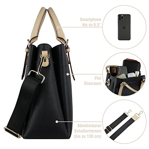 VIEL PLATZ: Mit einer Größe von 29 cm x 11,5 cm x 17,5 cm bietet diese Damentasche genug Platz für die nötigen Gegenstände des Alltags. Durch das geringe Eigengewicht von nur 730g ist die Tasche angenehm leicht zu tragen