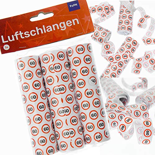 Details: Carpeta 27 Luftschlangen * 60. Geburtstag * als Deko für Party und Birthday | 3 Rollen mit je 9 Schlangen mit…