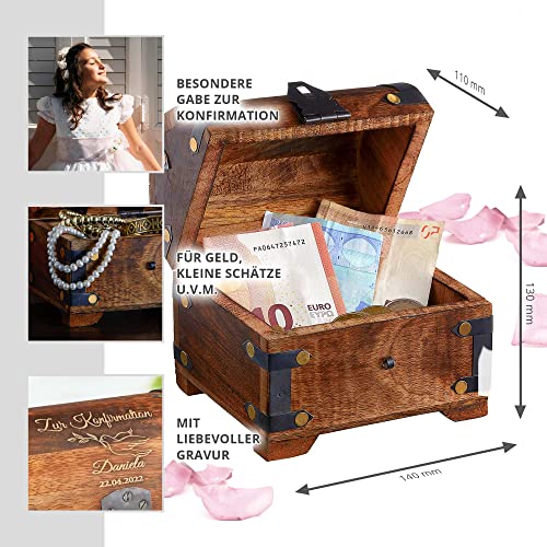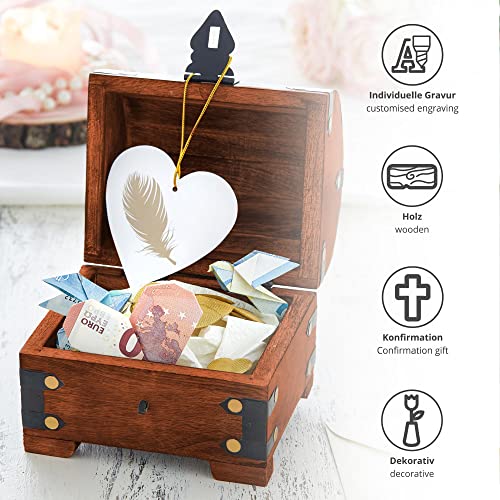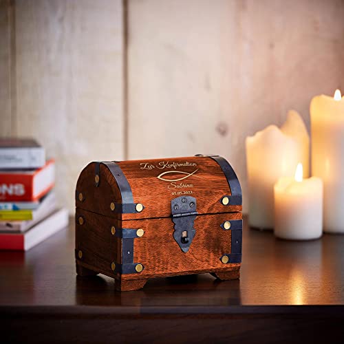Details: Casa Vivente Große Schatztruhe mit Gravur zur Konfirmation, Motiv Fisch, Personalisiert mit Namen und Datum, Dunkles…