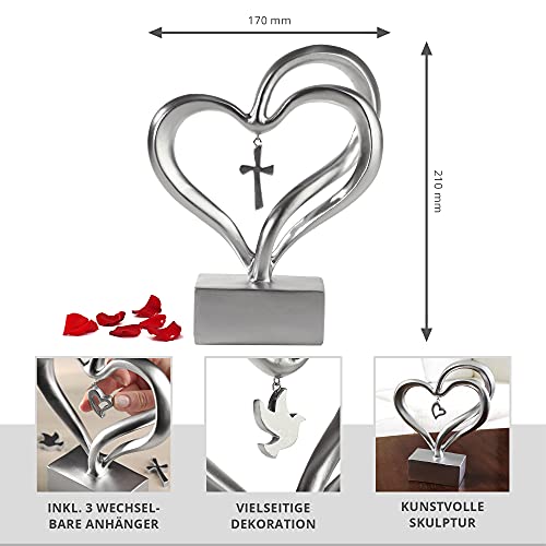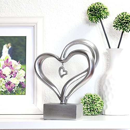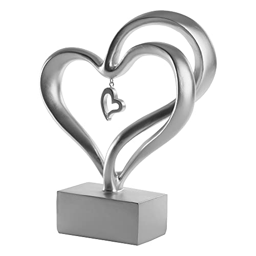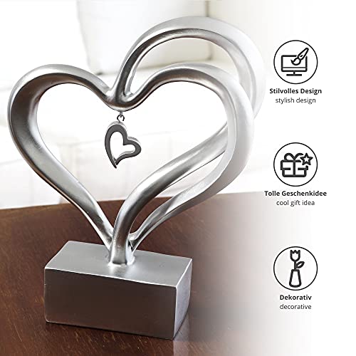 STILVOLLES DESIGN – Das 18 cm hohe, geschwungene Herz aus stabilem Kunstharz steht auf einem silberfarbenen Sockel und fügt sich als Silber Deko wunderbar in jeden modernen Einrichtungsstil.