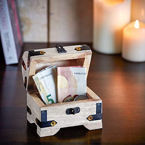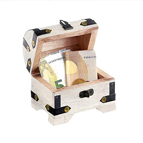 Rustikale Schatzkiste: Die edle Bauernkasse aus weißem Echt-Holz ist eine stilvolle Geschenkverpackung für Geld, Gutscheine oder Schmuck. Die nostalgischen Messing-Beschläge sorgen für einen Retro-Look.