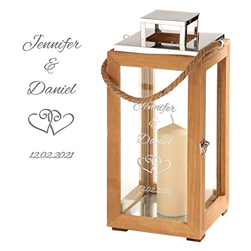Details: Casa Vivente Romantische Holzlaterne mit Gravur zur Hochzeit, Personalisiert mit Namen, Datum und Herzen, Dekoratives…