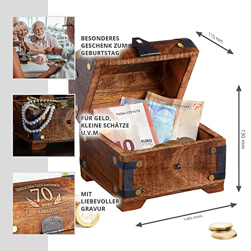 Casa Vivente Schatztruhe mit Gravur zum 70. Geburtstag, Personalisiert mit Namen, Aufbewahrungsbox aus dunklem Holz…