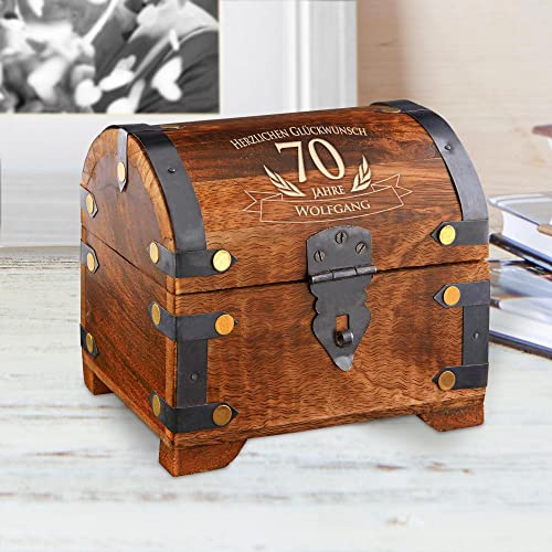 Details: Casa Vivente Schatztruhe mit Gravur zum 70. Geburtstag, Personalisiert mit Namen, Aufbewahrungsbox aus dunklem Holz…