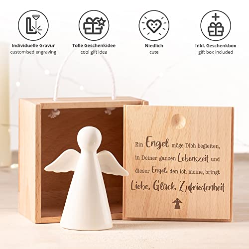 👼 MIT EINGRAVIERTEM SPRUCH – Ein kurzes Gedicht auf der Holzschatulle überbringt zusätzlich deine Glückwünsche! Das 10 x 10 x 5,5 cm große Holzkästchen dient als Zuhause unseres kleinen Engels und lässt sich ganz einfach Auf- und Zuschieben.