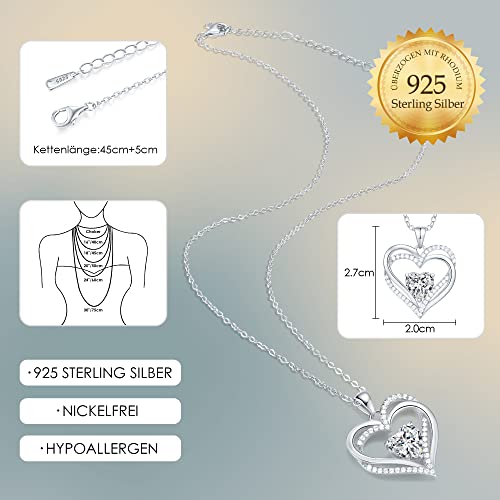 Details: CDE Kette Damen Geschenke Für Sie Herzkette 925 Sterling Silber Geburtsstein Halsketten für Damen Schmuck Herz Anhänger…