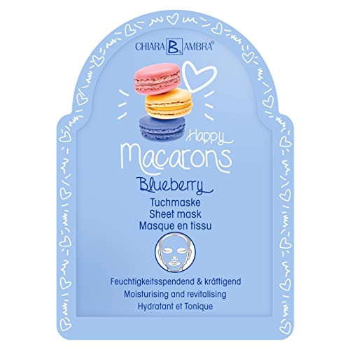 Für fa(r)belhafte Wohlfühl-Momente im LebenNicht nur den Franzosen gelang mit der Erfindung der Macarons ein Meisterstück. Die CHIARA AMBRA Tuchmasken bereiten Ihnen ebenso köstliche Momente. Fa(r)belhaft wie die bunten Versuchungen verzaubern sie mit dem herrlichen Duft nach süßen, luftig-leichten Macarons und lassen die Anstrengungen des Tages verblassen. Dabei stehen die Tuchmasken den kleinen, französischen Kostbarkeiten in Sachen Farbenfröhlichkeit in nichts nach!Diese Maske verwöhnt nicht nur die Haut, sondern auch die Sinne! Die blaubeer-farbige Maske schmiegt sich mit ihrer seidenweichen Oberfläche sanft jeder Gesichtskontur an und sorgt so für eine optimale Wirkstoffaufnahme der Haut. Mit Blaubeer-Extrakt, Shea-Butter, Collagen und Hyaluron Hautschützende Eigenschaften Die Haut wirkt geschmeidiger und vitaler Versorgt die Haut intensiv mit Feuchtigkeit Blaubeeren gelten als sehr gute Vitamin A-, E- und C-Spender Durch die praktischen Einzelverpackungen kann die Maske platzsparend in jeder Handtasche und auch im Handgepäck auf Flugreisen mitgenommen werden.Anwendung:Vor der Anwendung die Haut reinigen und das Make-up entfernen. Maske auflegen und mit den Fingern glatt streichen. 15 bis 20 Minuten einwirken lassen. Tuchmaske abnehmen und Rückstände mit einem weichen Kosmetiktuch entfernen.Pflegetipp:Die Maske entfaltet ihre Wirkung am effektivsten, wenn Sie diese nach einem heißen Bad oder der Dusche auflegen. Durch den warmen Wasserdampf öffnen sich die Poren und die Haut ist bereit für eine optimale Wirkstoffaufnahme.Für ein absolutes Frische-Erlebnis: Legen Sie die Tuchmaske vor der Anwendung kurz in den Kühlschrank und erleben Sie eine herrliche Erfrischung.Für alle Hauttypen geeignet – Dermatologisch getestetInhalt: 25 ml