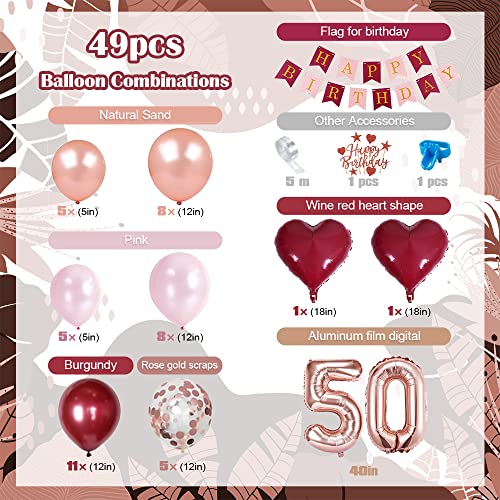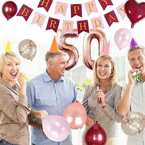 【Luftballon für Mädchen 】: 1*50 Folienballon, 1*‘Happy Birthday’ Banner, 1*Geburtstagstortenaufsatz, 2*18 Zoll burgunder Herzballons, 5*5 Zoll Pinke Ballons, 5*5 Zoll Rosengolde Luftballons, 5*12 Zoll Goldene Konfetti Ballons, 8*12 Zoll Rosengolde Ballons, 8*12 Zoll Pinke Ballons, 11*12 Zoll Burgunder Ballons, 1*Ballonbindewerkzeug, 1*Ballonbogenstreifen.