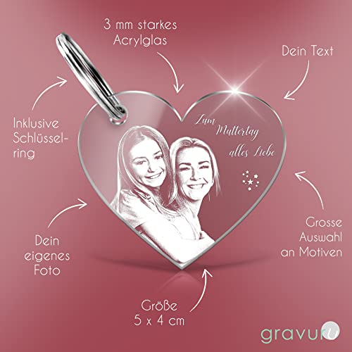 ✔️ FOTO SCHLÜSSELANHÄNGER : Ein wunderschöner Schlüsselanhänger in Herzform aus Acrylglas mit professioneller Foto-Gravur. So individuell wie Du. Für einen ganz besonderen Tag oder Menschen.