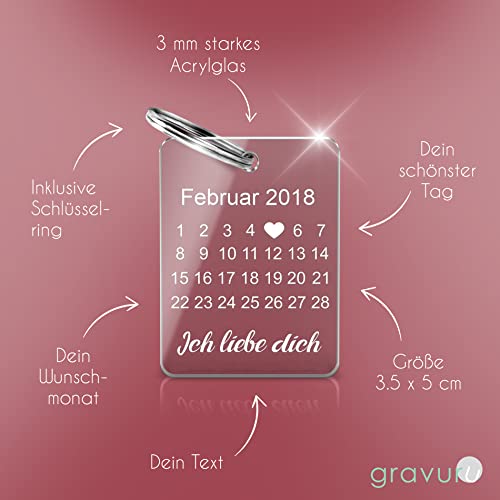 ✔️ Persönlicher Kalender Schlüsselanhänger: Ein wunderschöner Acrylglas Anhänger mit professioneller Gravur. Verschenke einen Schlüsselanhänger personalisiert mit Eurem besonderen Tag & einer Wunsch Botschaft (z.B. Du und Ich ).