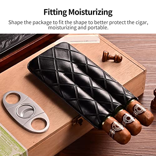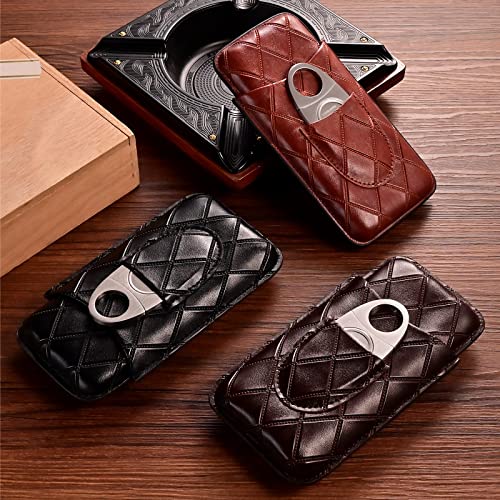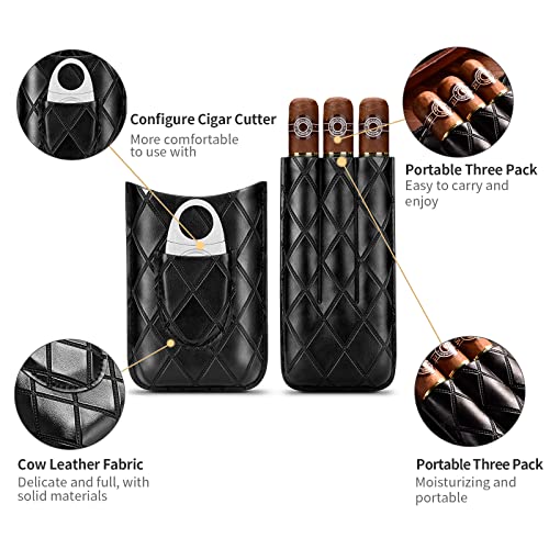 Details: CIGARLOONG Zigarrenetui Leder Zigarre Reise Humidor Halten 3 Röhren mit Zigarrenschneider(Farbe:Schwarz)