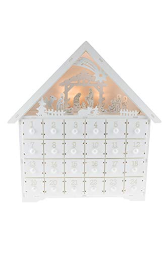 Clever Creations Holz Adventskalender Countdown bis Weihnachten LED Weihnachtsdeko batteriebetrieben Weihnachtskrippe weiß