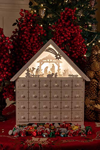 Details: Clever Creations – Adventskalender mit LED-Beleuchtung und Krippenszene – mit funktionierenden Schubladen – beleuchtbar…