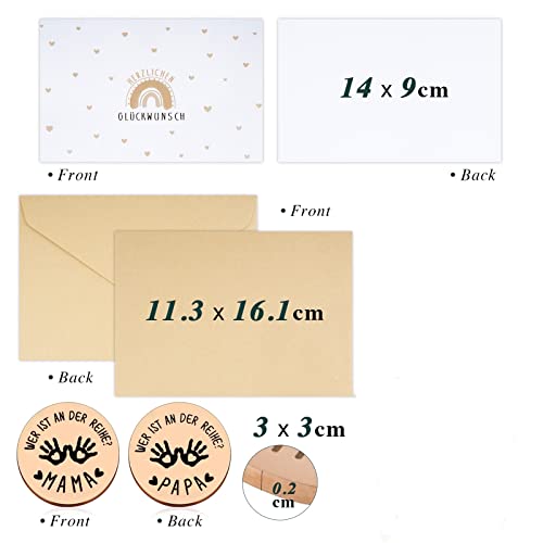 👶Größe: Der Durchmesser von Münze misst 3cm, die Dicke ist 0.2cm. Die Größe der Grußkarte nach dem Falten ist ca. 14x9cm. Der Umschlag ist 16.2×11.4cm.