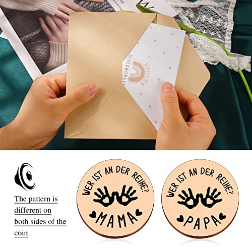 👶Flip-Münze Geschenk: Tolles Geschenk für neue Eltern, um eine Entscheidung zu erleichtern. Eine Seite von dieser Münze sagt, dass Mama an der Reihe ist, die andere Seite sagt, dass Papa an der Reihe ist.