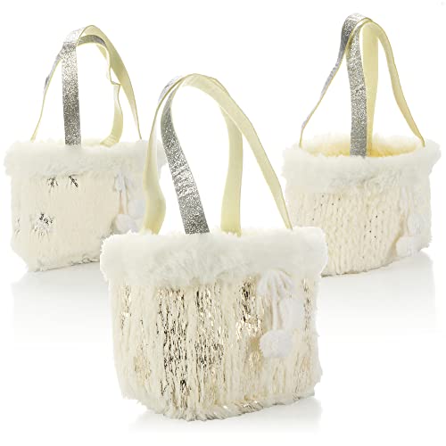 Details: com-four® 3X Weihnachtskorb – Plüsch-Geschenkkorb in weihnachtlichem Design – X-Mas Henkeltasche – Geschenktasche für…