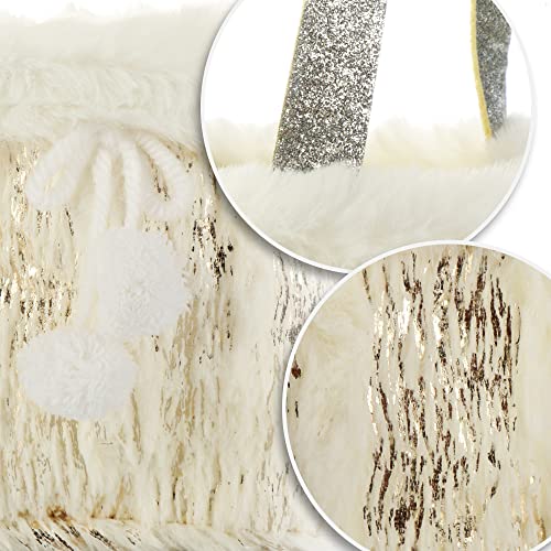 Der Plüsch-Geschenkkorb in weihnachtlichen Farben verfügt über zwei glitzernde Griffe, die den Transport deutlich erleichtern!