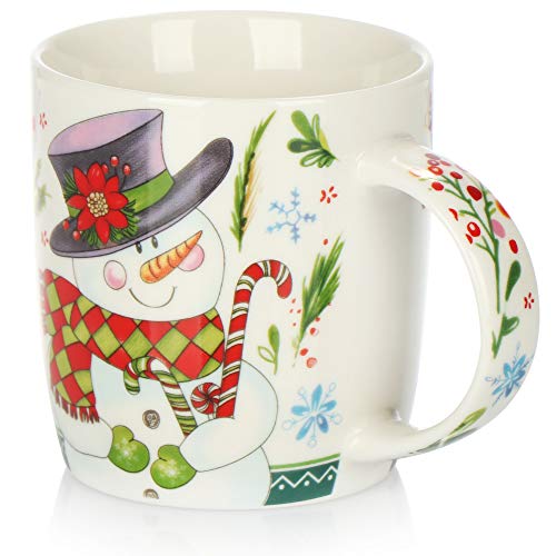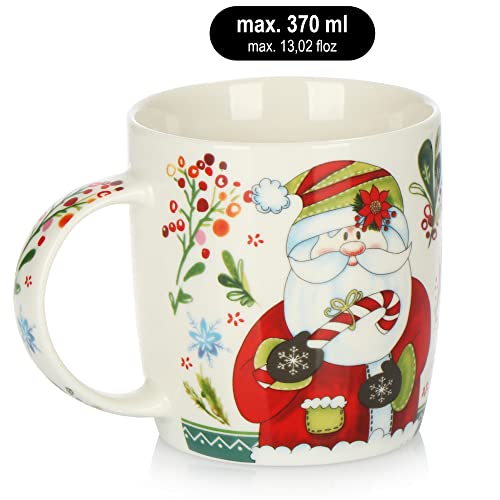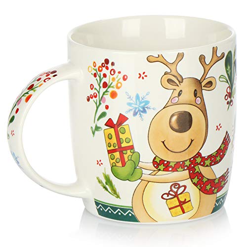 Kaffeebecher aus Porzellan – Kaffee-Tasse für Weihnachten mit bunten Motiven – Kaffeepott für Kalt- und Heißgetränke – 370 ml