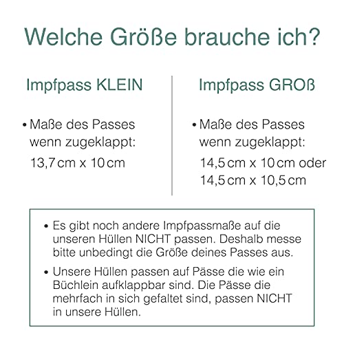 2 GRÖßEN ZUR AUSWAHL: FÜR DEN DEUTSCHEN IMPFPASS – Bitte schaue dir die Angaben in dem Bild an, und wähle danach deine Größe aus.