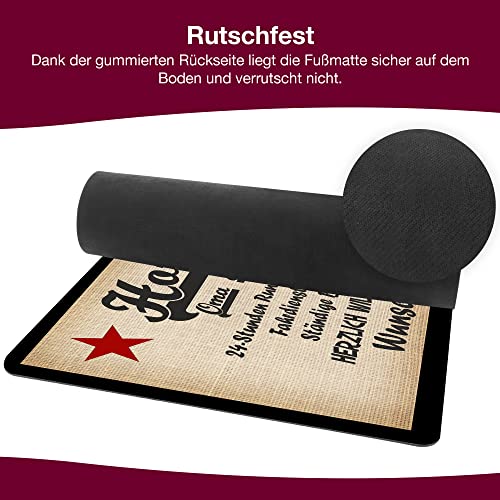 FUSSMATTE IDEAL für viele ANLÄSSE : Diese Fußmatte eignet sich für jeden Anlass wie Geburtstag, Einzug, Umzug, Einweihungsfeier, Richtfest ,Büromatte Weihnachtsgeschenk – Kann im Innenbereich und Außenbereich genutzt werden. Für extremen Schmutz nicht geeignet.