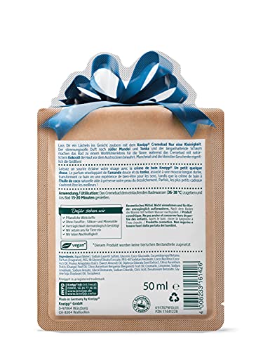 Lass Dir ein Lächeln ins Gesicht zaubern mit dem Kneipp Cremebad Nur eine Kleinigkeit. Der stimmungsvolle Duft nach süßer Mandel und Tonka und der langanhaltende Schaum machen das Bad zu einem Wohlfühlerlebnis für die Sinne, während das Cremebad mit natürlichem Kokosöl die Haut vor dem Austrocknen bewahrt. Manchmal sind die kleinsten Geschenke eigentlich die Größten Rezeptur ohne Mikroplastik.