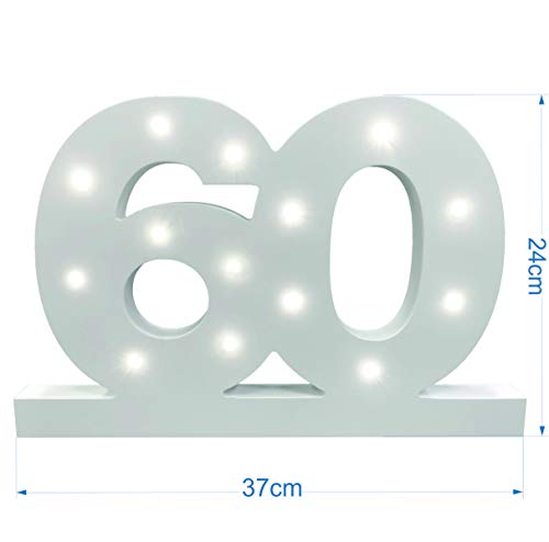 LED Beleuchtung 💡: Mit dieser beleuchteten XL LED Zahl wird Ihr Geburtstag zum echten Hingucker! Die LEDs leuchten in einem warm-weiß und werden durch 2x AAA Batterien betrieben (nicht im Lieferumfang enthalten).