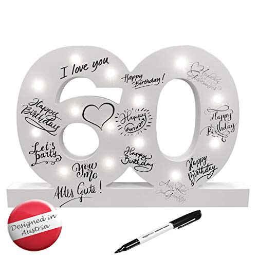 Details: CREOFANT ® XL Gästebuch 60 Geburtstag Deko mit LED Beleuchtung 37 cm x 24 cm · Tischdeko Geschenkidee 60…