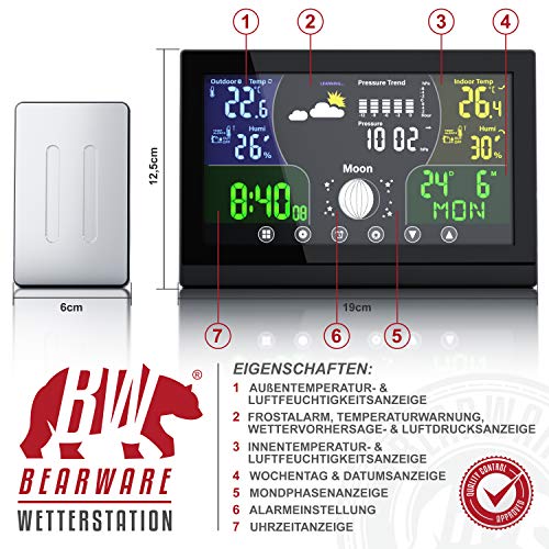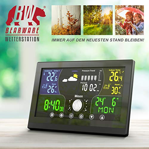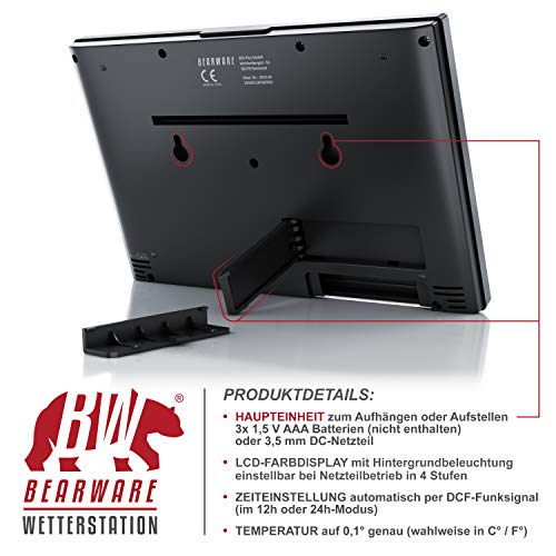 Starten Sie mit der Wetterstation gut gelaunt in den Tag. Lassen Sie sich von der Weckfunktion munter machen und checken Sie wichtige Wetterdaten auf dem großen LCD-Farbdisplay. Ihnen werden u.a. die Luftfeuchtigkeit, der Luftdruck, die Innen- und Außentemperatur sowie die Wetterentwicklung (Trends) angezeigt. Übrigens: das Display lässt sich auch aus seitlichem Blickwinkel gut ablesen. | 303530