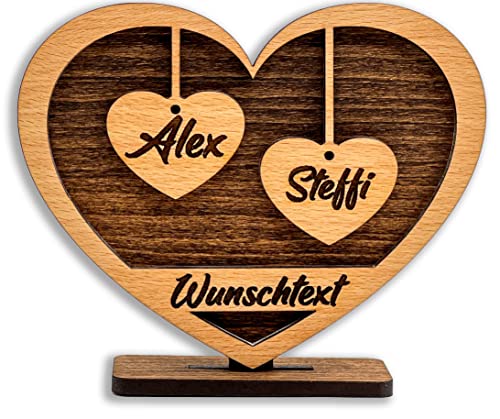 Herz mit Gravur aus Holz – Wunschtext bis zu 6 Namen – Geschenk für Eltern, Großeltern, Oma, Opa, Enkel, Freunde, Liebe – Größe 15x12x4cm – Individuell, Persönlich