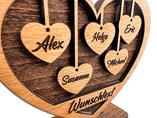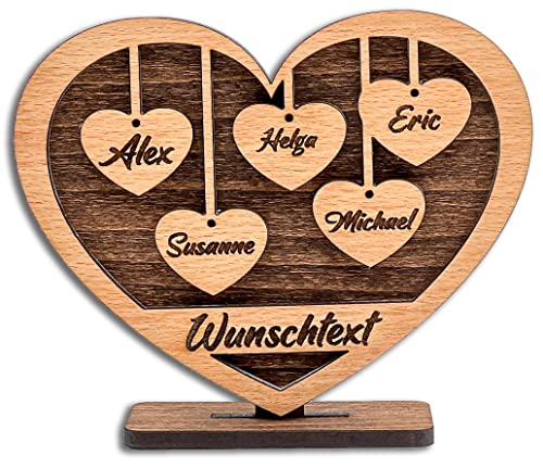 Herz mit Gravur aus Holz – Wunschtext bis zu 6 Namen – Geschenk für Eltern, Großeltern, Oma, Opa, Enkel, Freunde, Liebe – Größe 15x12x4cm – Individuell, Persönlich