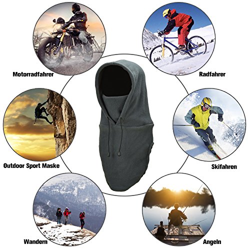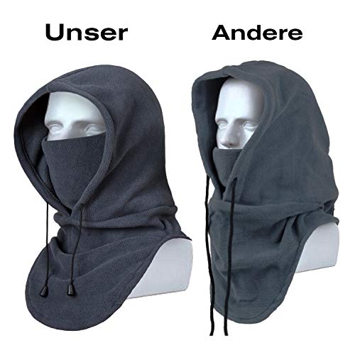 【Tragekomfort & exzellente Passform】Weil das Polarfleece sehr weich ist, werden Sie sich nicht unwohl fühlen, wenn es im Kontakt mit Nase und Mund habt. Dealkits Sturmhaube hat eine gute Elastizität und ausstattet mit einer Gummilitze, um Kopfmaße des Träger zu anpassen und um Gesicht und Hals vollständig zu decken.