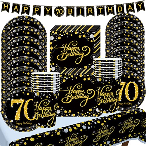 Details: Deko 70. Geburtstag Partygeschirr Männer Frauen, 70 Geburtstag Pappteller Servietten Tischdeko, Schwarz Gold Set mit…