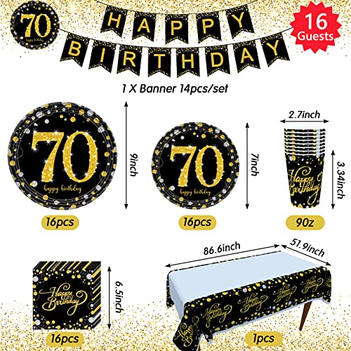 【Geburtstag Gedrucktes Design】Mit gedrucktem „70 Happy Birthday“, alle Pappteller, Tassen, Servietten und Girlande sind in Schwarz und Gold abgestimmt. Elegantes und einzigartiges Design wird die Erinnerung fur Sie und Ihre Gäste zu vertiefen, machen diesen 70 Geburtstag mehr sinnvoll.