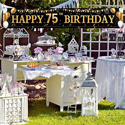 【Große Größe】Paket enthält ein Stück große Schwarz und Gold alles Gute zum Geburtstag Banner, misst 9,8 x 1,8 Fuß/3mx50cm, groß genug für perfekte Geburtstag Party-Dekoration und für Fotografie Kulissen auf Ihrer Party.