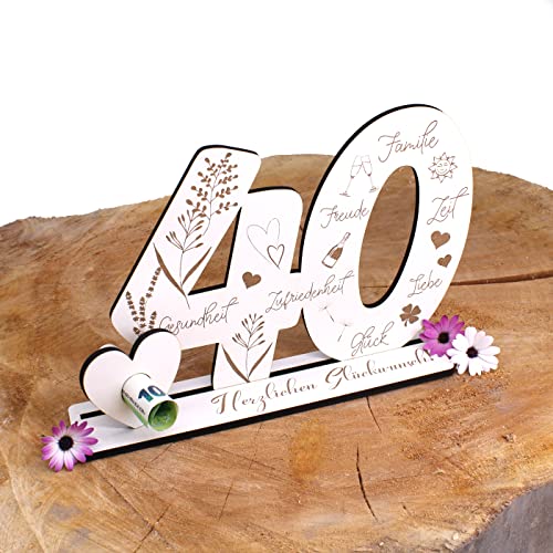 Details: Deko Aufsteller 40 Jahre Geburtstag Geldgeschenk Jubiläum Tischdeko zum verschenken für Geld Gutschein Karte
